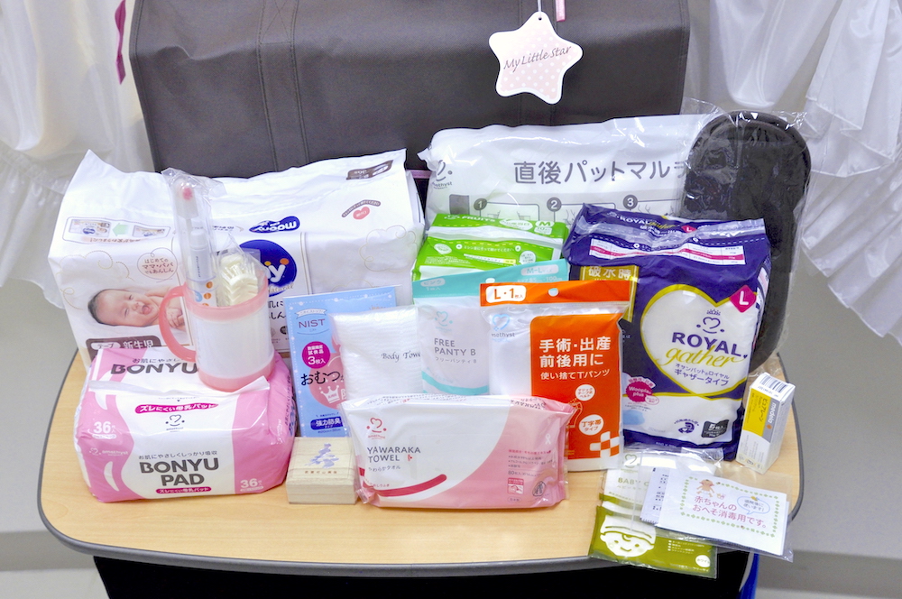 お産の方は、入院準備の負担を少しでも軽減できるよう、入院中に必要なものやアメニティ類をご用意しています。