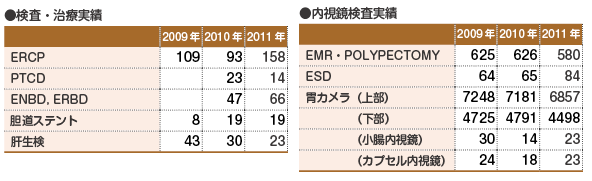 日本消化器病学会専門医制度認定施設、日本消化器内視鏡学会指導施設です。消化管造影、内視鏡(胃カメラ、大腸鏡、小腸内視鏡、カプセル内視鏡、ERCPなど)、エコー、CT、MRI、PET-CTなどの多数の検査を行っています。さらに、EMR、ESD、TACE、RFAなど多くの治療も施行しています。外科と連携し、診断、治療において最新の診断・治療を展開しています。